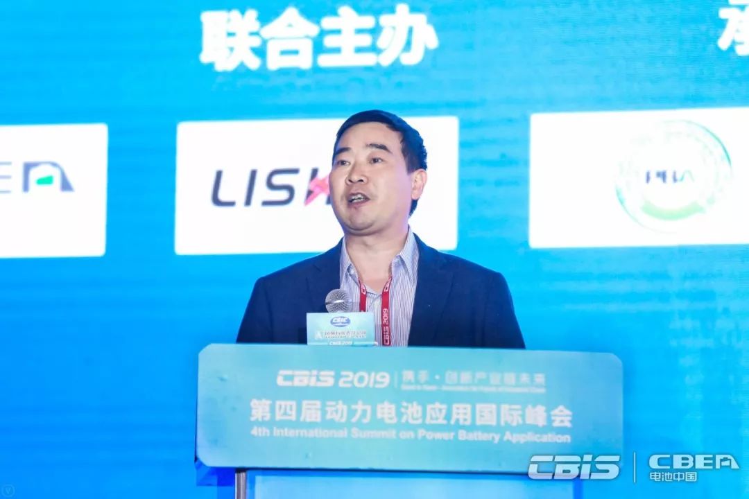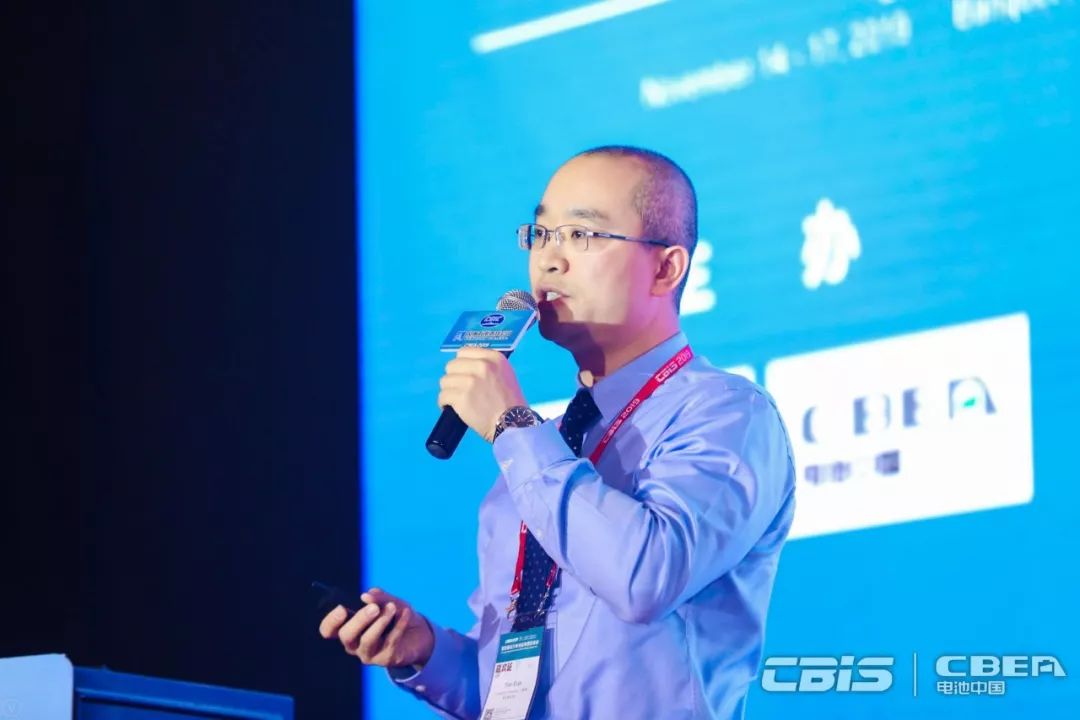 圖為星恒電源股份有限公司電池研究院副院長趙成龍發(fā)表演講