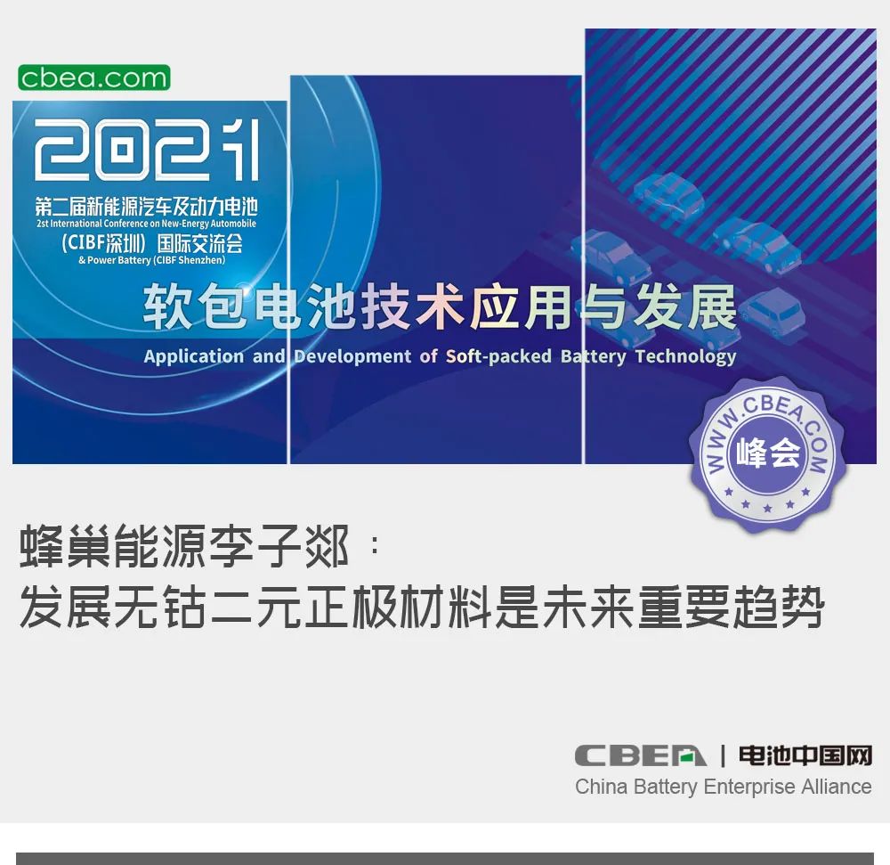 日前,“第二屆新能源汽車及動力電池(CIBF2021深圳)國際交流會”在深圳舉行,在風帆有限責任公司冠名的“軟包電池核心材料及先進技術突破”專場論壇上,蜂巢能源科技有限公司材料事業部總經理李子郯在“無鈷正極材料技術及應用”的主題演講中,介紹了當前無鈷電池材料體系研發現狀、無鈷正極材料發展方向,以及蜂巢能源無鈷電池開發進展等。