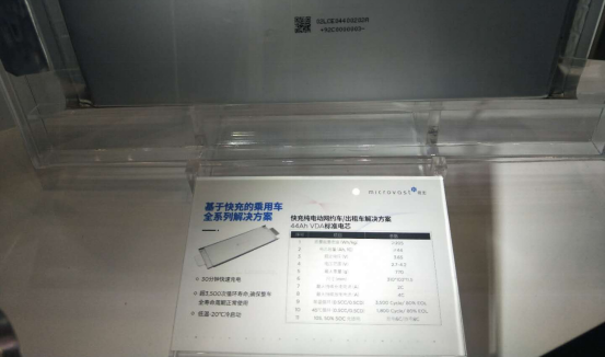 圖為2019上海車(chē)展上微宏動(dòng)力展出的快充純電動(dòng)乘用車(chē)-52Ah VDA產(chǎn)品