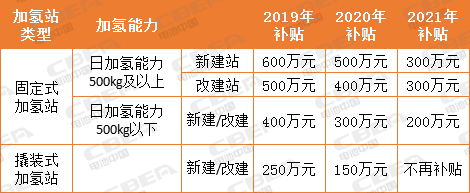 對日加氫能力350公斤及以上的加氫站給予建設補貼,加氫站建設補貼按以下標準進行。