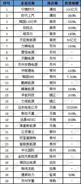 江蘇省2019年動(dòng)力電池企業(yè)統(tǒng)計(jì)從表中可以看出,幾乎國內(nèi)動(dòng)力電池主力都在江蘇省扎根,國內(nèi)寧德時(shí)代、力神電池、中航鋰電、孚能科技、時(shí)代上汽、欣旺達(dá)等2019年我國動(dòng)力電池裝機(jī)量TOP10中有6家在江蘇有動(dòng)力電池生產(chǎn)基地。此外,韓國LG化學(xué)、SKI等也把主要工廠選在了江蘇。動(dòng)力電池領(lǐng)域“新玩家”如蜂巢能源、遠(yuǎn)景AESC、中化國際,也把生產(chǎn)基地選在了江蘇省。據(jù)電池中國網(wǎng)了解,眾多電池企業(yè)將項(xiàng)目選址定在了江蘇省主要有以下兩個(gè)方面原因:第一,長三角地區(qū)是我國汽車,尤其是新能源汽車企業(yè)較為聚集的地區(qū),整車廠希望關(guān)鍵零部件能就近配套。對(duì)于動(dòng)力電池企業(yè)來說,在江蘇南京、常州、揚(yáng)州、無錫等地建廠,不僅在主機(jī)廠希望的500公里物理半徑范圍內(nèi),就近配套,節(jié)省運(yùn)輸成本,同時(shí)還可以更好貼近整車企業(yè),加強(qiáng)溝通協(xié)作。第二,江蘇省對(duì)于新能源汽車產(chǎn)業(yè)也有著比較健全的政策配套支持。江蘇省發(fā)布的《關(guān)于促進(jìn)新能源汽車產(chǎn)業(yè)高質(zhì)量發(fā)展的意見》提出,到2021年,打造1個(gè)、培育2個(gè)具有國際競爭力的新能源汽車產(chǎn)業(yè)集聚基地。其中要求,充分發(fā)揮江蘇省產(chǎn)業(yè)鏈完整、配套能力強(qiáng)的優(yōu)勢,以南京、無錫、常州、蘇州等為依托,圍繞動(dòng)力電池、汽車電子、動(dòng)力總成等領(lǐng)域,打造1-2個(gè)在國內(nèi)外具有較大影響力的關(guān)鍵零部件產(chǎn)業(yè)集群。基于上述目標(biāo),江蘇省在政策支持上表示,將在培育先進(jìn)制造業(yè)集群的統(tǒng)一政策框架下,統(tǒng)籌現(xiàn)有財(cái)政專項(xiàng)資金,重點(diǎn)支持新能源汽車產(chǎn)業(yè)集群中重點(diǎn)骨干企業(yè)的重大科技成果轉(zhuǎn)化、新技術(shù)新產(chǎn)品推廣應(yīng)用、關(guān)鍵技術(shù)攻關(guān)、重大平臺(tái)建設(shè)、兼并重組等項(xiàng)目。發(fā)布《重點(diǎn)新能源汽車企業(yè)重大創(chuàng)新技術(shù)和產(chǎn)品目錄》,支持新能源汽車產(chǎn)業(yè)新技術(shù)新產(chǎn)品示范應(yīng)用,對(duì)產(chǎn)品性能好、應(yīng)用規(guī)模大的示范應(yīng)用項(xiàng)目給予資金獎(jiǎng)勵(lì)。在動(dòng)力電池項(xiàng)目不斷聚集的情況下,江蘇省也吸引了許多動(dòng)力電池上游材料、設(shè)備企業(yè)的集聚。廣東省2019年動(dòng)力電池企業(yè)統(tǒng)計(jì)2019年,廣東省有13家電池企業(yè)為新能源汽車配套動(dòng)力電池,位居全國第二。小編認(rèn)為,廣東省動(dòng)力電池企業(yè)數(shù)量排在第二,除了與當(dāng)?shù)卣咧С帧⒌乩砦恢糜嘘P(guān)外,還與廣東省傳統(tǒng)消費(fèi)類電池制造較為發(fā)達(dá)有關(guān)。廣東省有眾多傳統(tǒng)3C、數(shù)碼消費(fèi)類電池企業(yè),在新能源汽車大潮洶涌發(fā)展下,不少傳統(tǒng)消費(fèi)電池企業(yè)開始向車用動(dòng)力電池領(lǐng)域轉(zhuǎn)型。浙江省2019年動(dòng)力電池企業(yè)統(tǒng)計(jì)河南省2019年動(dòng)力電池企業(yè)統(tǒng)計(jì)國內(nèi)其他省份2019年動(dòng)力電池企業(yè)統(tǒng)計(jì)