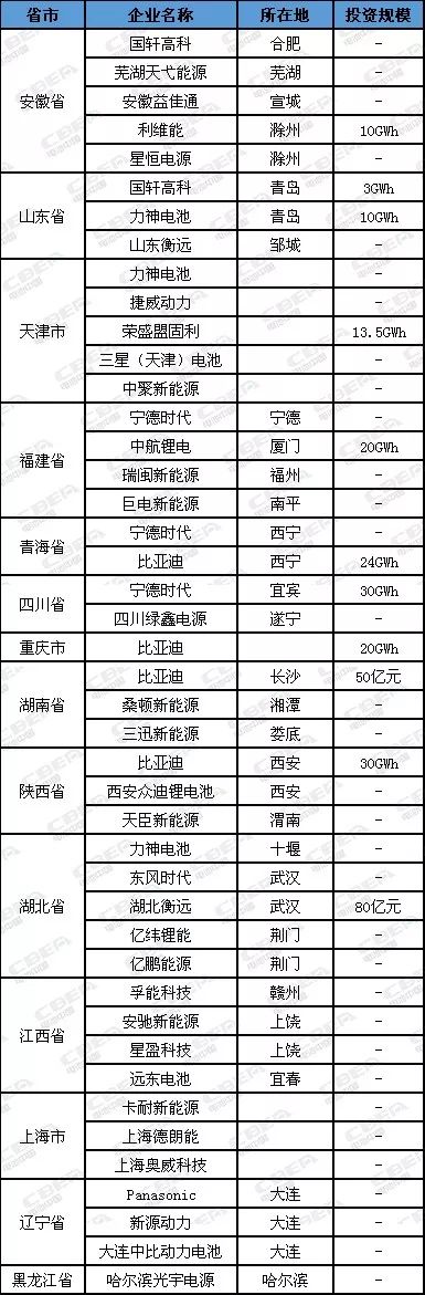 最新!我國各省市動(dòng)力電池企業(yè)統(tǒng)計(jì)