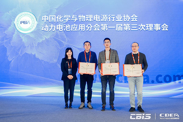 (動力電池應用分會秘書長張雨為新增專家委員會委員頒發證書)