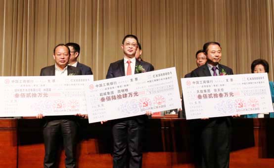 周明明(中)領(lǐng)取工業(yè)企業(yè)突出貢獻(xiàn)獎(jiǎng)