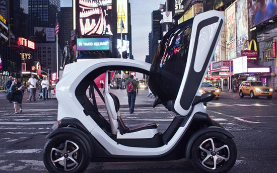 在歐洲,雷諾公司Twizy電動車:整車質(zhì)量(467千克)、乘客人數(shù)(2人)、最高車速(45公里/小時)、續(xù)駛里程(100公里)