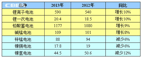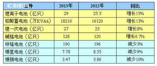 表1:2013年電池行業(yè)主要產(chǎn)品產(chǎn)量概況