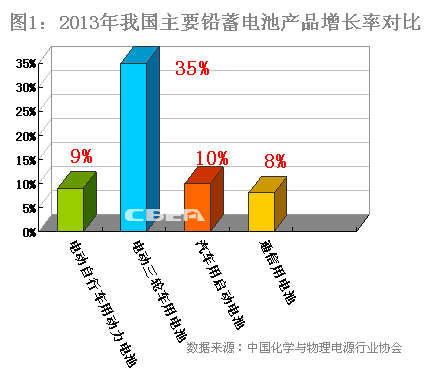 其中,電動自行車用動力電池增速為9%,電動三輪車用電池增速為35%,汽車用啟動電池的增長速度為10%,通信用電池的增速為8%左右。