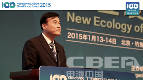 比亞迪股份公司董事長王傳福在論壇上做主題演講