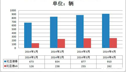 5月12日,比亞迪銷售有限公司副總經(jīng)理李云飛公布了比亞迪4月銷量數(shù)據(jù),新能源車型銷量連續(xù)上漲:秦4月銷量為910輛,1-4月累計(jì)3294輛;e6銷售262輛,1-4月累計(jì)售出881輛。