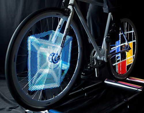 Monkey Light 是一款裝配在自行車輪子上的 LED 燈光系統。通過這套系統,騎行者僅需要通過簡單的圖片文件設置就可以讓自行車輪在騎行時形成一個屏幕,播放出各種彩色的動畫效果,是不是很有個性!