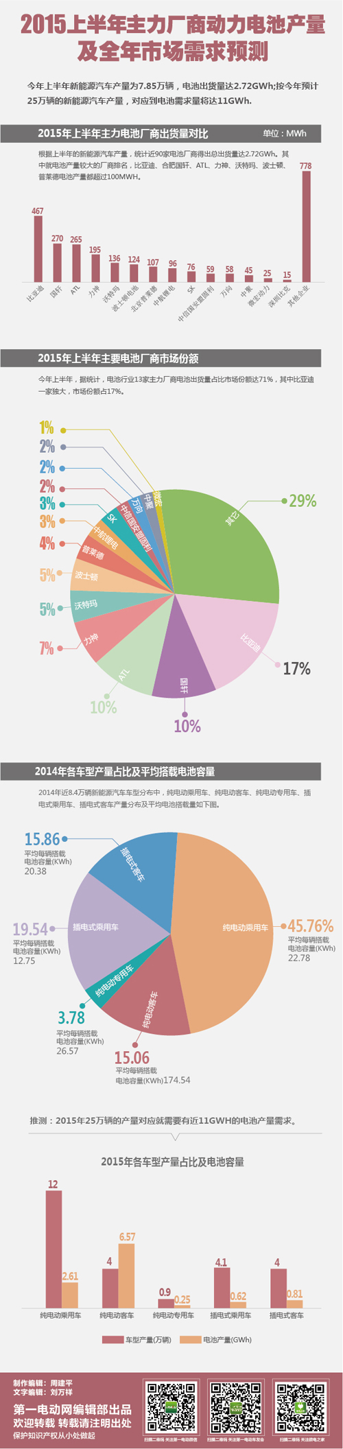 今年上半年新能源汽車產量為7.85萬輛,電池出貨量達2.72GWh;按今年預計25萬輛的新能源汽車產量,對應到動力電池需求量將達11GWh。