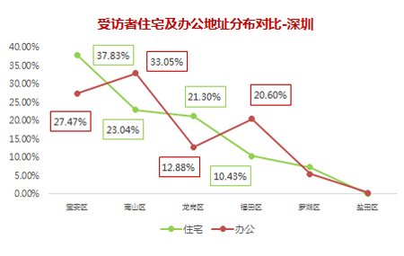 深圳的受訪者范圍覆蓋了6個城區,其中寶安區、南山區、龍崗區的受訪者人數最多。