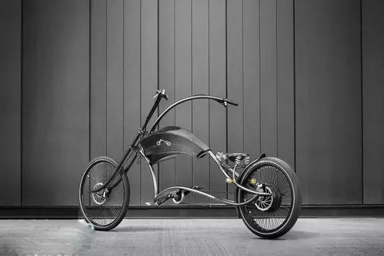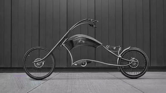 這輛電動(dòng)自行車采用純手工打造,看到這優(yōu)美的弧線都是熟手的鈑金師傅親手凹出,十足哈雷范,在上面完全可以騎出阿諾斯瓦辛格的感(cuo)覺(jué)(jue),同時(shí)車架由不銹鋼制成,重量55kg,根據(jù)自己對(duì)體形的自信程度,還可以懸著2600、2800、3000mm三種長(zhǎng)度,真不知道3m長(zhǎng)的電動(dòng)自行車騎起來(lái)會(huì)是什么樣的體驗(yàn)。