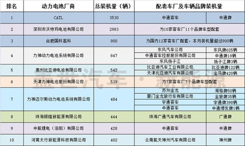 第四位是北京普萊德新能源電池科技有限公司,主要北汽股份生產(chǎn)的北京牌電動(dòng)車配套,當(dāng)月裝機(jī)量為913輛。