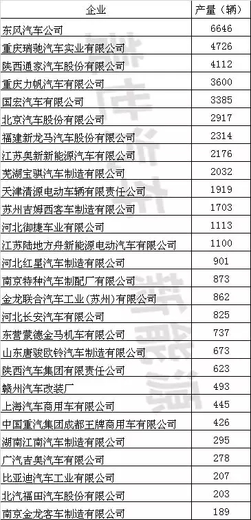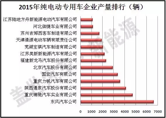 根據統計,2015年有13家純電動專用車生產企業全年產量超過1000輛。