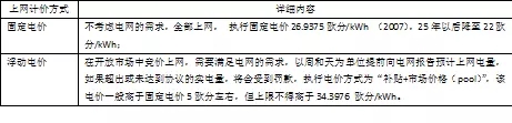 表:光熱發電電價補貼方案