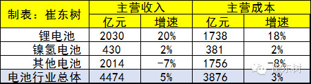 電池行業(yè)收入增長較好