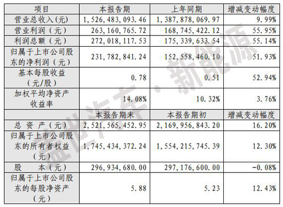 報(bào)告期內(nèi),公司實(shí)現(xiàn)營業(yè)總收入152,648.31萬元,同比增長9.99%;實(shí)現(xiàn)營業(yè)利潤26,316.08萬元,比上年同期增長55.95%;實(shí)現(xiàn)利潤總額27,201.81萬元,比上年同期增長55.14%;實(shí)現(xiàn)歸屬于上市公司股東的凈利潤23,178.28萬元,比上年同期增長51.93%。以上各項(xiàng)利潤指標(biāo)增長的原因主要是報(bào)告期內(nèi)公司產(chǎn)品結(jié)構(gòu)調(diào)整,毛利率較高的UPS中大功率產(chǎn)品及充電樁產(chǎn)品銷售比重增加。