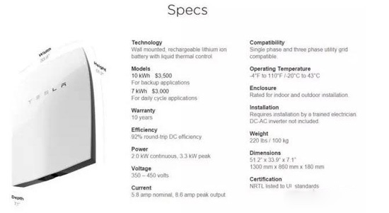 特斯拉家庭用電池能量墻Powerwall分為兩種,一種是6.4kWh的價格為$3,000美元,一種是10kWh的價格為$3,500美元,停產的是10kWh的(見下圖)。